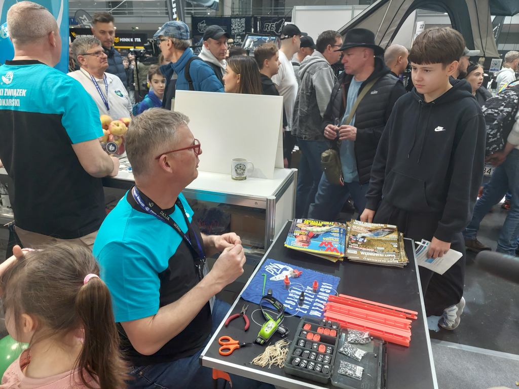 W tym roku na stoisku Polskiego Związku Wędkarskiego prezentowana była oferta skierowana przede wszystkim do najmłodszych pasjonatów, rozpoczynających swoją przygodę z wędkarstwem. Czołowi zawodnicy prezentowali metody oraz przynęty spinningowe, a kol. Wojtek Kamiński – pierwszy reprezentant Polski, który zdobył tytuł indywidualnego Mistrza Świata – na miejscu przygotowywał i wręczał na pamiątkę zestawy spławikowe.